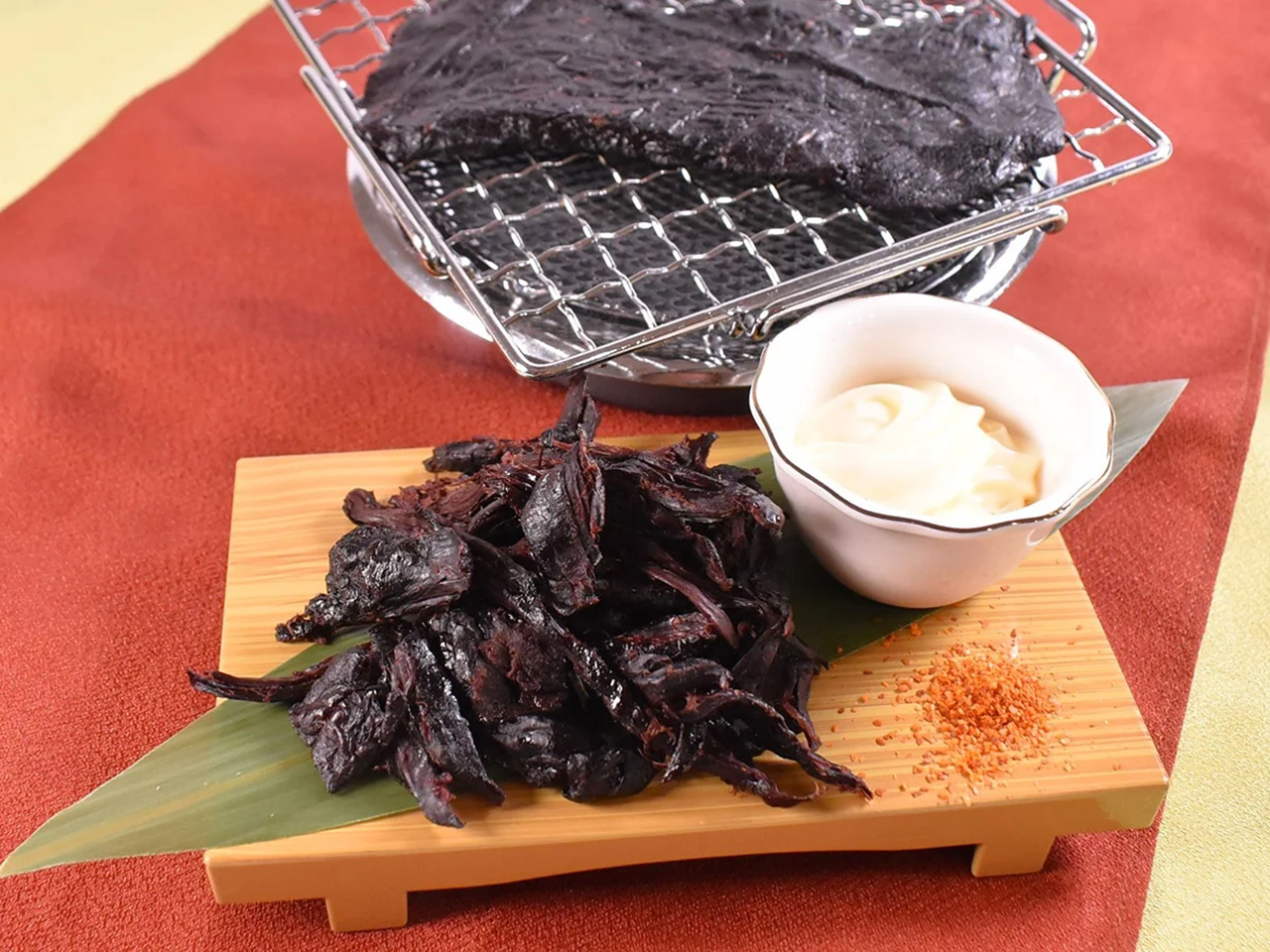 南房総に古くから伝わる「くじらのたれ」は、鯨肉を特製のタレで味付けし、丁寧に干し上げた房州名物。江戸時代から続く保存食としての知恵が詰まっており、噛むほどに旨みがにじみ出る独特の風味と食感が魅力です。そのままでももちろん、軽く炙って香ばしさを引き立てれば、酒の肴にぴったりの逸品になります。合わせるお酒は、和蔵酒造が手がける「竹岡 特別純米 総の舞」。千葉県産の酒米「総の舞」を100%使用し、米本来のふくよかな旨味と爽やかな酸味が調和した、食中酒として優れた一本です。くじらのたれの濃厚なコクと塩味を、この純米酒が柔らかく包み込み、あと口をすっきりと整えてくれます。千葉の海と大地、それぞれの恵みが引き立て合う、地酒と郷土食ならではの上質なペアリングをお楽しみください。